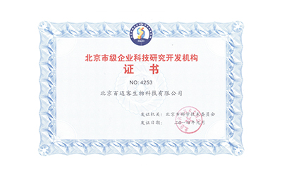 公司先后榮膺“北京市高新技術(shù)企業(yè)”、“中關(guān)村高新技術(shù)企業(yè)”、“北京市級(jí)企業(yè)科技研究開發(fā)機(jī)構(gòu)”、“北京市生物醫(yī)藥產(chǎn)業(yè)跨越發(fā)展工程(G20)-后備企業(yè)”、“北京博士后(青年英才)創(chuàng)新實(shí)踐基地”、“北京市企業(yè)技術(shù)中心”、“中關(guān)村開放實(shí)驗(yàn)室”、“北京市專利試點(diǎn)單位”、“瞪羚企業(yè)”及“德勤高科技高成長亞太區(qū)500強(qiáng)”等榮譽(yù)。