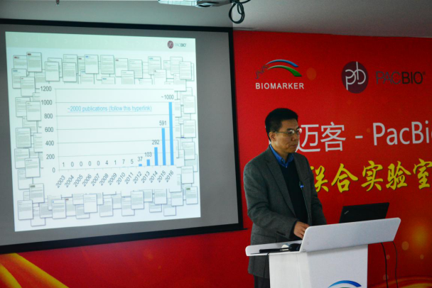 ? 揭牌儀式上,百邁客CEO鄭洪坤在致辭中表示:“百邁客-PacBio-基因公司共建聯(lián)合實驗室揭牌儀式標志著三方在共建實驗室合作方面邁出了實質性的一 步,它證實了創(chuàng)新思路才能帶來可喜改變的信念。近幾年來,中國的基因測序服務市場已經在產業(yè)化和市場化方面取得了長足發(fā)展,好的市場離不開好的產業(yè)鏈條, 建立良性的產業(yè)鏈條需要基因測序行業(yè)上、中、下游企業(yè)的積極參與,企業(yè)之間強強聯(lián)合、建立良好的合作和互信,才能共同承擔市場風險,才能實現(xiàn)真正的合作共 贏。這有利于整個行業(yè)生態(tài)圈的發(fā)展,有利于更好的履行企業(yè)的社會責任。百邁客始終立足自身,不斷創(chuàng)新,推出新的產品和服 務,提高客戶體驗。同時,我們積極尋求外部合作,推動企業(yè)發(fā)展,目前已經和眾多的跨國企業(yè),如illumina,Thermo,Sigma,PE等建立了 良好的合作關系,有效的助推了公司的快速發(fā)展。我們希望借助實驗室強強聯(lián)合,把技術的優(yōu)勢、數(shù)據分析的優(yōu)勢、渠道推廣的優(yōu)勢更好的整合起來,讓更多的人受 益于三代測序,更好的為這個行業(yè)貢獻力量”。