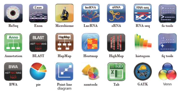 標(biāo)準(zhǔn)化流程分析的集成式App是依據(jù)公司多年來(lái)進(jìn)行生物信息分析的經(jīng)驗(yàn),集成了一類生物信息分析所要用到的多個(gè)軟件,并讓這些軟件串聯(lián)起來(lái),形成一個(gè)標(biāo)準(zhǔn) 化的分析流程。標(biāo)準(zhǔn)流程分析出的結(jié)果與常規(guī)交由公司進(jìn)行數(shù)據(jù)處理分析得到的結(jié)果一致,以分析報(bào)告的形式展示。