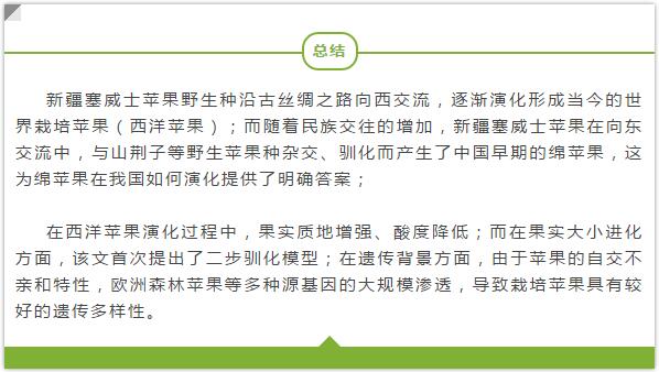 研究發(fā)現(xiàn),從新疆境內(nèi)采集的塞威士蘋果保持較高的同源性、最原始,而同屬中亞地區(qū)的哈薩克斯坦境內(nèi)的塞威士蘋果基因雜合度則相對(duì)較高。這充分說明,世界栽培蘋果起源于中國(guó)新疆。該研究確認(rèn)全世界 蘋果的共同祖先是新疆野蘋果,歐洲的森林蘋果作為重要的基因貢獻(xiàn)者與現(xiàn)代蘋果之間存在大規(guī)模基因滲透。