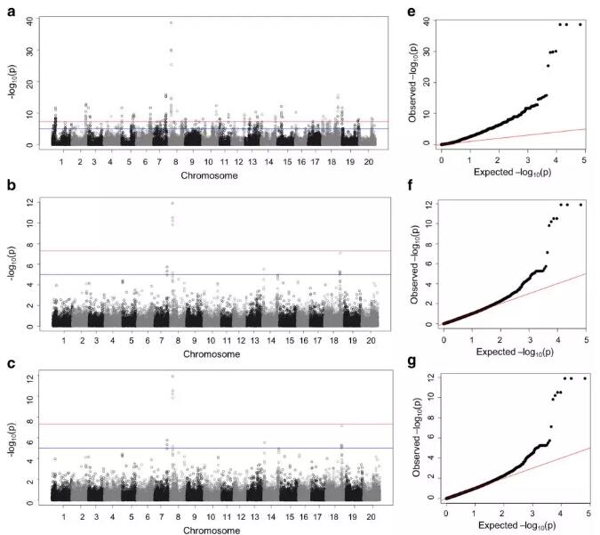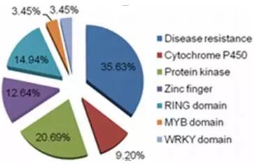 (2)通過(guò)全基因組關(guān)聯(lián)分析找到19個(gè)與胞囊線蟲抗性相關(guān)的位點(diǎn),其中8個(gè)位點(diǎn)與之前報(bào)道過(guò)的QTL位點(diǎn)重合,8個(gè)位點(diǎn)與已經(jīng)報(bào)道的抗胞囊線蟲基因Rhg4及Rhg1連鎖,并鑒定出3個(gè)新的QTL位點(diǎn)。通過(guò)基因注釋獲得到與抗病,細(xì)胞色素P450,蛋白激酶等相關(guān)的功能基因。