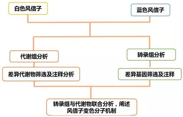 1.本篇文章結(jié)合已發(fā)表的文章,采用靶向代謝組的技術(shù),分析白色和藍(lán)色風(fēng)信子中與花青素合成相關(guān)差異代謝物,同時(shí)通過轉(zhuǎn)錄組解析花色素合成相關(guān)差異基因變化,最后轉(zhuǎn)錄組和代謝組揭示了白色風(fēng)信子褪色分子機(jī)制。