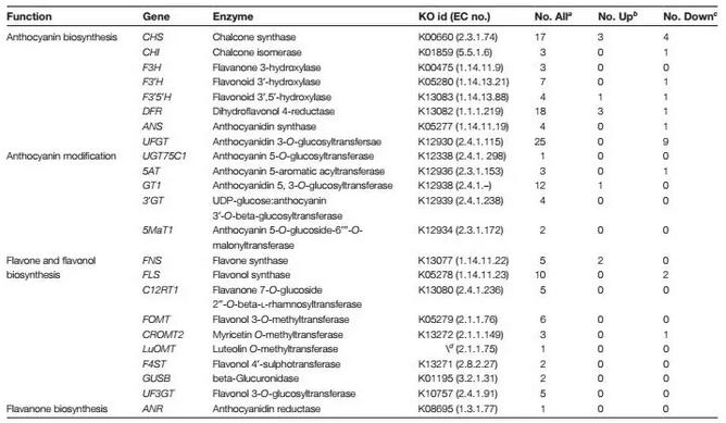 3.藍(lán)色和白色風(fēng)信子中與花青素相關(guān)的差異基因