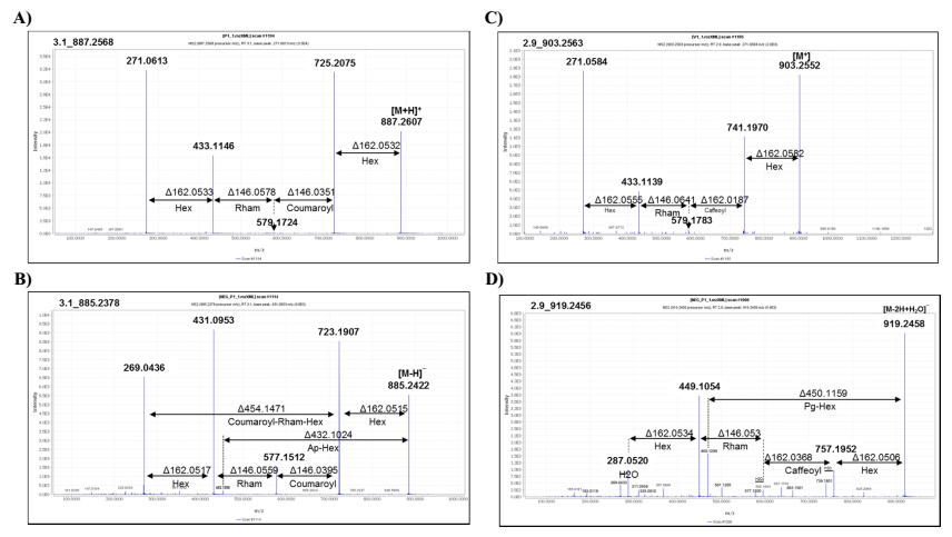 圖3 黃酮類化合物的二級(jí)質(zhì)譜分析