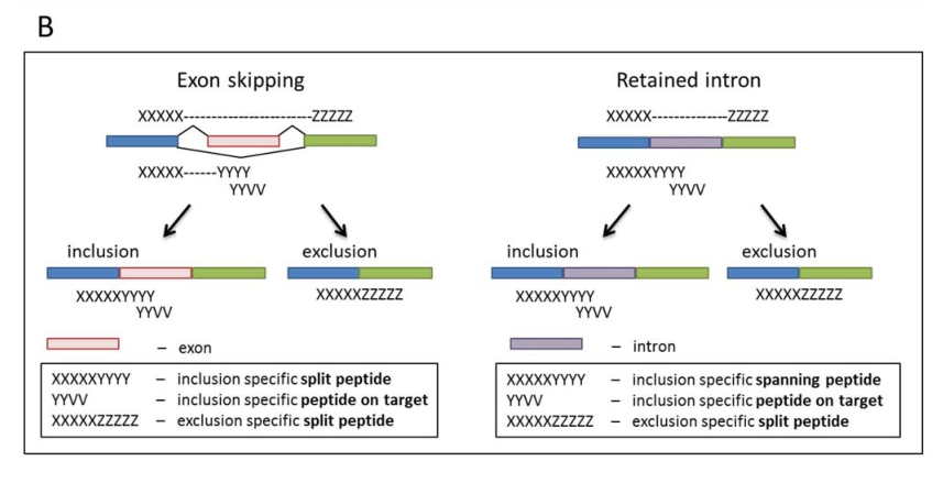 splicify作為一種基于整合RNA大規(guī)模并行測序數(shù)據(jù)和串聯(lián)質(zhì)譜蛋白質(zhì)組學數(shù)據(jù)的分析方法其新穎性在于兩組分子間選擇性剪接的差異分析,可應(yīng)用范圍很廣泛,如基因敲低與對照樣品或癌癥與健康樣品間的比較。