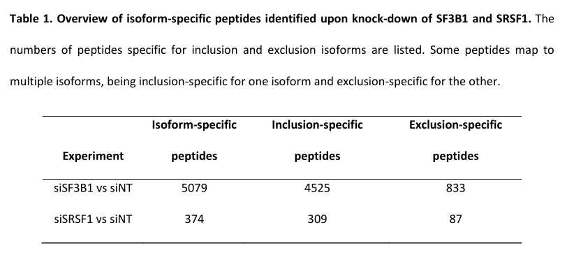 Splicify的意義在于識別RNA水平和蛋白質(zhì)水平上的isoform。通過對RNA和蛋白水平的對比分析證明該方法能夠成功地識別特定條件下蛋白質(zhì)水平上的異常剪接事件。