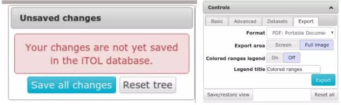 6、編輯確定后,點擊右上邊的Save all changes即保存了當前的編輯,編輯完成并保存后,選擇export選項卡,選擇輸出文件的格式,一般選擇svg/pdf等矢量圖格式,Export area務(wù)必選擇Full image。