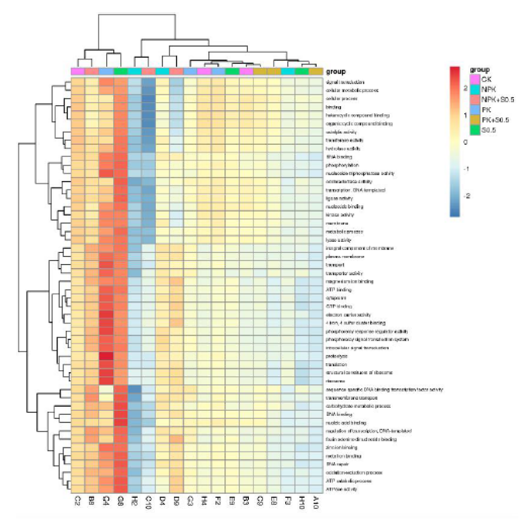 - GO數(shù)據(jù)庫功能豐度聚類熱圖