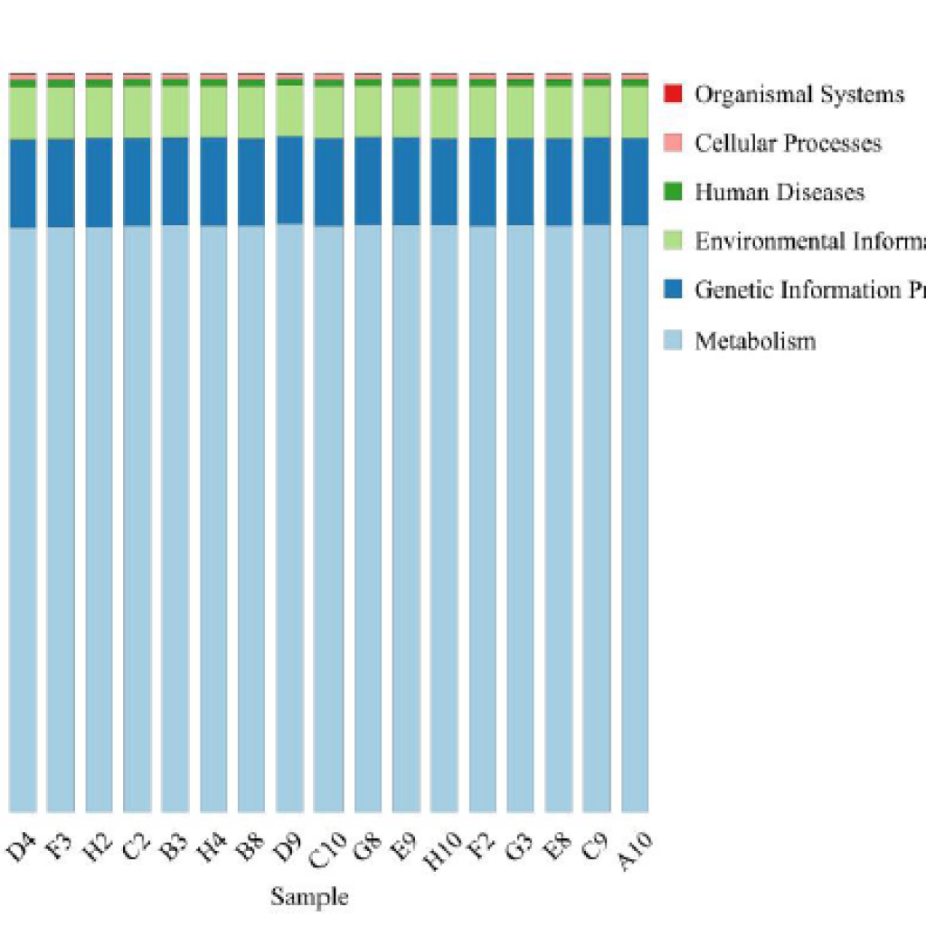 - KEGG數(shù)據(jù)庫第一層級注釋的相對功能豐度柱形圖