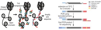 ATAC-seq:Assayfor Transposase-Accessible Chromatin with high throughput sequencing(使用高通量測(cè)序?qū)n5轉(zhuǎn)座酶易接近性核染色質(zhì)區(qū)域進(jìn)行測(cè)序分析),由美國(guó)加利福尼亞州斯坦福大學(xué)研究人員于2013年提出,是一種表觀遺傳學(xué)研究技術(shù),通過轉(zhuǎn)座酶對(duì)某種特定時(shí)空下開放的核染色質(zhì)區(qū)域進(jìn)行切割,獲得在該時(shí)空下基因組中所有活躍轉(zhuǎn)錄的調(diào)控序列。通過ATAC-seq研究可以得到全基因組上處于開放狀態(tài)的染色質(zhì)區(qū)域,進(jìn)一步定位核小體及相關(guān)調(diào)控元件。