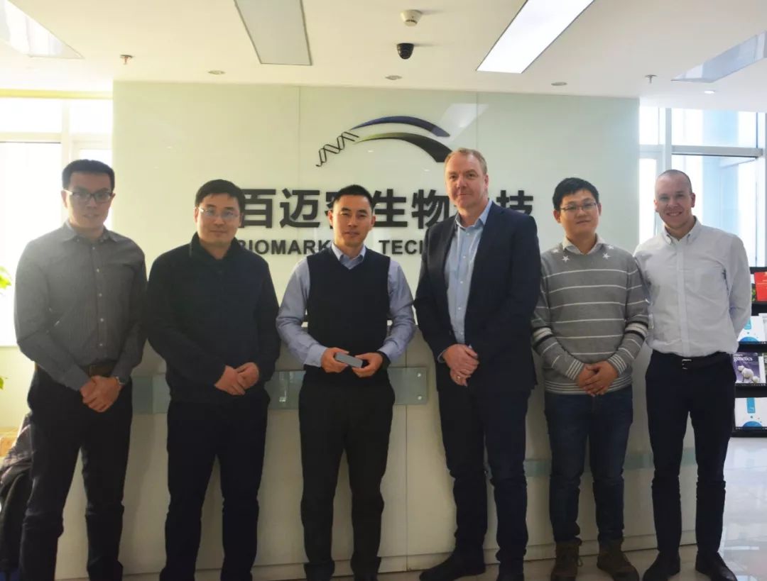 (百邁客CEO鄭洪坤先生等與Oxford Nanopore 商業(yè)運(yùn)營副總裁Richard等合影)