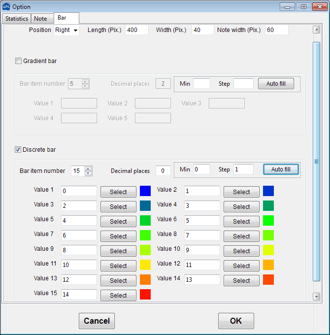 定義顏色標(biāo)尺連續(xù)或不連續(xù),右鍵Set up bar;Set up statistic: 設(shè)置繪制此熱圖使用到的數(shù)學(xué)上的屬性(歸一化和聚類方法),一般二代數(shù)據(jù)選擇對數(shù)歸一化方式。