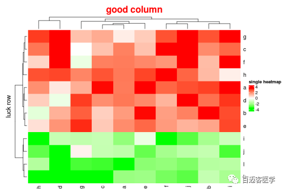 column_title?=?“good?column”,column_title_side?=?“top”,column_title_gp?=?gpar(fontsize?=?20,?fontface?=?“bold”,col=”red”),column_title_rot?=?0,cluster_columns?=?T,clustering_distance_columns?=”euclidean”,clustering_method_columns?=?“complete”,column_dend_side?=”top”,column_dend_height?=?unit(10,?“mm”),show_column_dend?=TRUE,column_dend_gp?=?gpar(),row_title?=?“luck?row”)