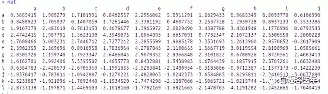 colnames(mat)?=?letters[1:10]????#列名為a-j