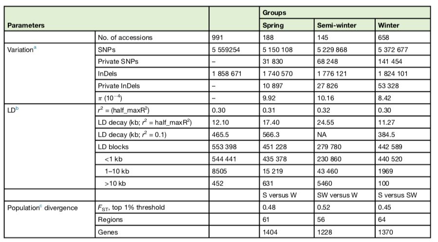 雖然已經報道了油菜的冬季、半冬和春季生態(tài)型的遺傳變異,但不同的生態(tài)類型在甘藍型油菜中的差異的關鍵等位基因變異尚不完全清楚。