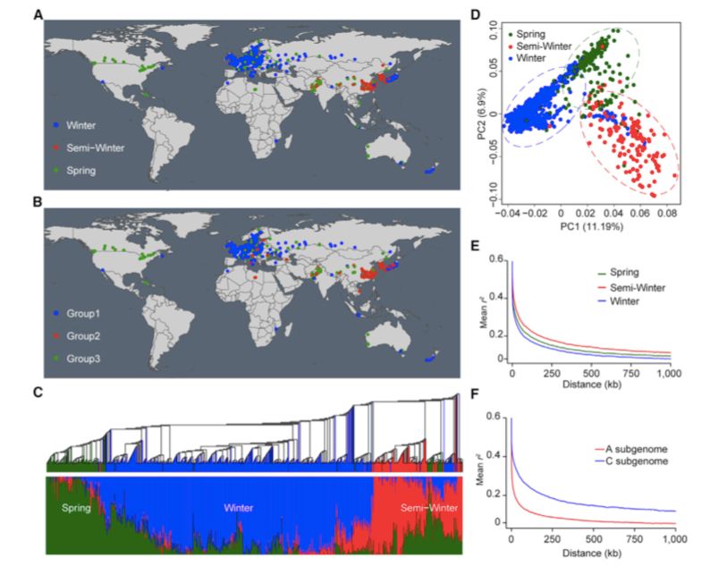 油菜(Brassica napus?L.)是世界上食用油和富含蛋白質的牲畜飼料的重要來源。甘藍型油菜B.napus (AACC)起源于距今不到7500年的兩個二倍體祖先白菜(B.rapa(AA)(n=10))和甘藍(B.oleracea(CC)(n=9))之間的種間雜交。盡管油菜的進化歷史比親本品種短,但它已經適應了不同的氣候區(qū)和緯度,并形成了三個主要的生態(tài)型群,即冬季型、半冬季型和春季型。