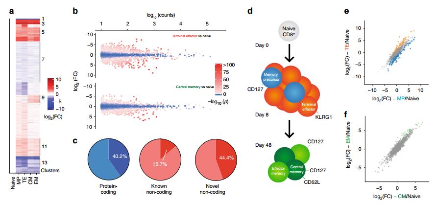 Hudson WH, Prokhnevska N, et al.?Expression of novel long noncoding RNAs defines?virus-specific effector and memory CD8+?T cells. Nature Communications, 2019.