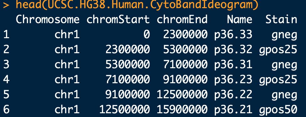 #?設(shè)置染色體數(shù)據(jù) cyto.info?<-?UCSC.HG38.Human.CytoBandIdeogram