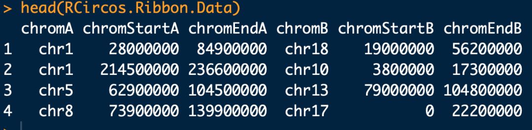 #?加載內(nèi)置的RCircos.Ribbon.Data數(shù)據(jù)集 data(RCircos.Ribbon.Data);