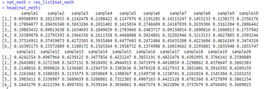 #矩陣,其中行對應(yīng)差異甲基化區(qū)域(DMR),矩陣中的值是每個樣品中DMR中的平均甲基化水平。