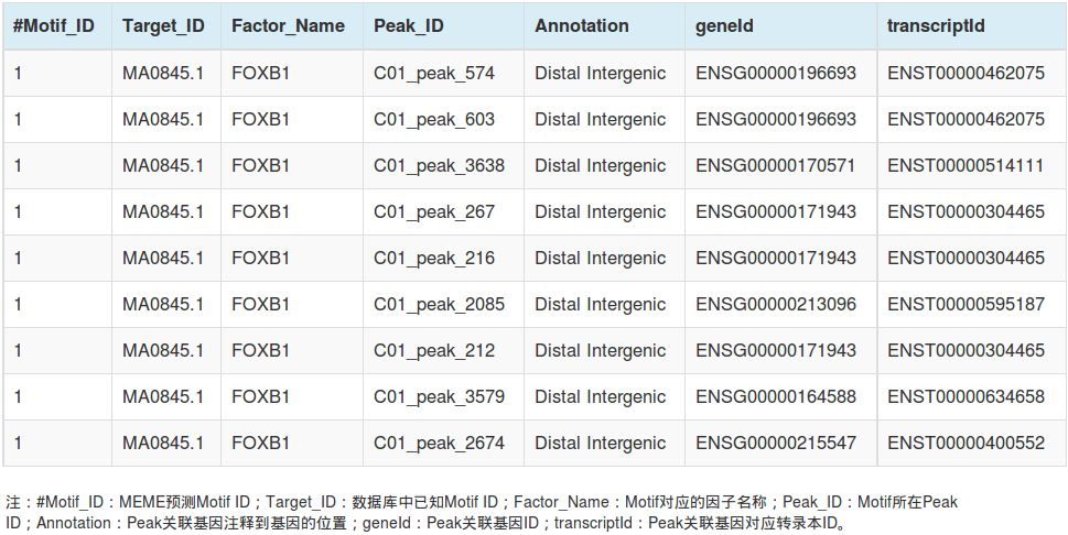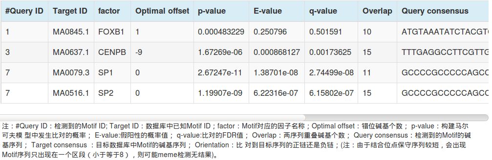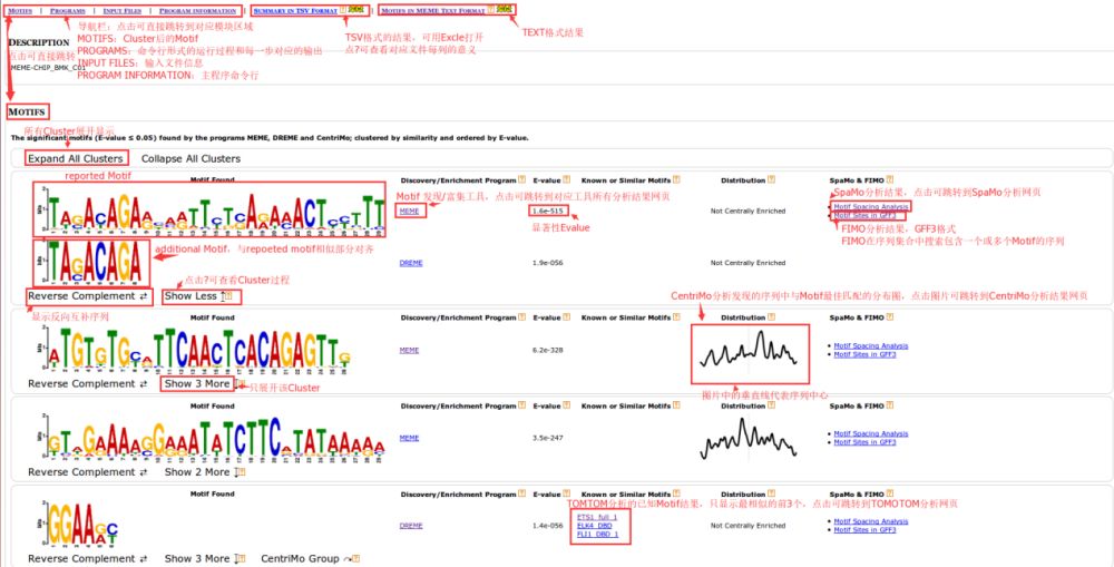 我們根據(jù)實際需求,從MEME-ChIP的原始分析結果中提取了精華,提供了較為全面完整的分析結果: