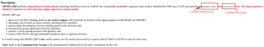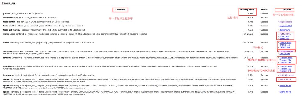 2、MEME-ChIP中嵌套的de novo Motif Discovery工具是MEME和DREME,Motif Enrichment工具是CentriMo和SpaMo,Motif Camparison(Motif注釋)軟件是Tomtom,Motif Scanning工具是FIMO。