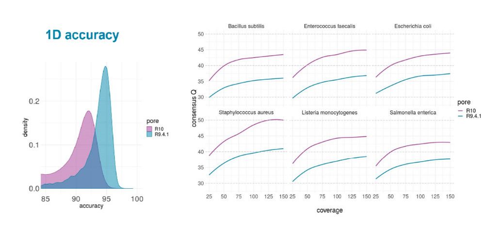 圖3?不同物種中R10和R9.4.1 reads準(zhǔn)確度