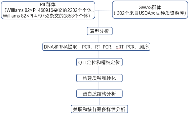 大豆(Glycine max)是從6000到9000年前的東亞野生親緣大豆中馴化而來(lái),導(dǎo)致了巨大的形態(tài)和生理變化,統(tǒng)稱為“馴養(yǎng)綜合癥”。一些與馴化有關(guān)的性狀(DRT)受一主要QTL控制,并且不同DRT所基于的某些QTL區(qū)域重疊。