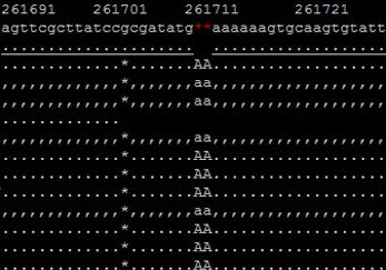 5.?通過將20?x?CCS數(shù)據(jù)分別回比到10 x PacBio CCS polish及100 x Nanopore+50 x Illumina Polish后基因組,截取基因組上特性區(qū)域,進(jìn)行組裝基因組單堿基準(zhǔn)確性的比對與評估,發(fā)現(xiàn)10?x?PacBio CCS polish后的結(jié)果提升效果明顯,我們挑選了幾個實(shí)例如下: