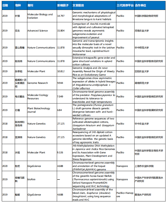 五、百邁客Nanopore、PacBio平臺動植物基因組合作文章總覽(部分)