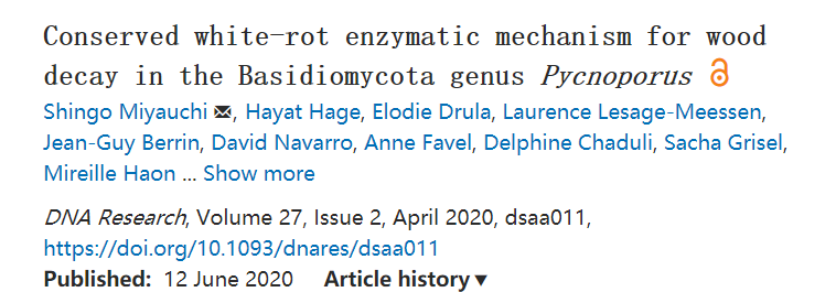 本文通過比較基因組,轉錄組和蛋白組等多組學方法對擔子菌門下的密孔菌屬的真菌進行研究,發(fā)現(xiàn)它們在木材降解反應中存在著一些保守的酶學反應特征,包括產過氧化氫酶和耗過氧化氫酶協(xié)同作用,纖維二糖脫氫酶和AA9溶解性多糖單氧酶協(xié)同作用。