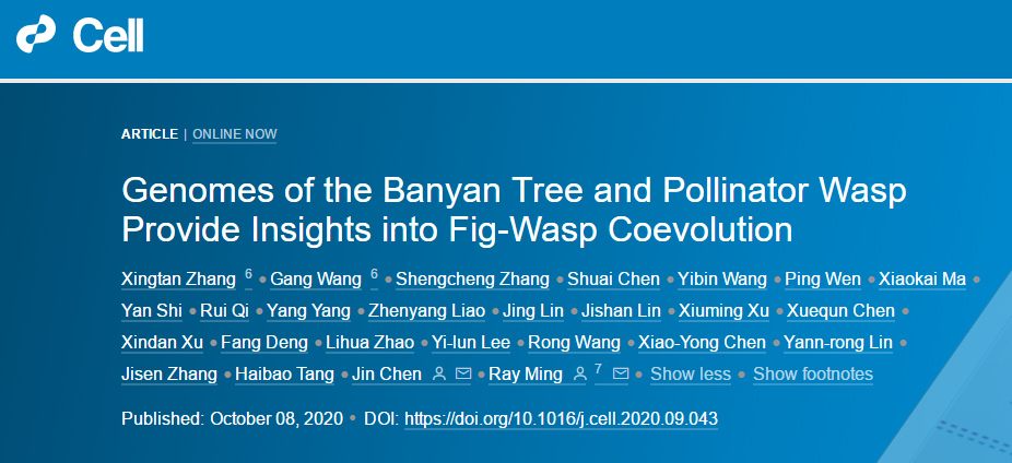 2020年10月8日,福建農(nóng)林大學(xué)基因組與生物技術(shù)中心聯(lián)合中國科學(xué)院西雙版納熱帶植物園等多個單位共同合作的榕-蜂協(xié)同進(jìn)化研究成果以“Genomes of the banyan tree and pollinator wasp provide insights into fig-wasp coevolution”為題在國際期刊Cell上在線發(fā)表。文中利用北京百邁客生物科技有限公司的Hi-C建庫測序技術(shù),并結(jié)合明瑞光課題組獨立研發(fā)的ALLHiC算法成功的將小葉榕和對葉榕組裝至染色體水平,并對榕樹氣生根、性別決定基因、榕樹進(jìn)化以及榕蜂共生體系專性協(xié)同進(jìn)化等進(jìn)行研究。該研究為明瑞光教授團(tuán)隊繼18、19年連續(xù)兩年論文刊登期刊Nature Genetics[1-2]后的又一次突破性成果!