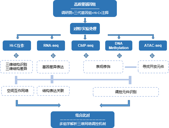 表觀遺傳(epigentics) “epi”表示“其上”或“超越”,genetics只設(shè)計基因的結(jié)構(gòu)層次,而epigenetics則涉及基因如何發(fā)揮其功能以及基因間的互作關(guān)系?;蚪M結(jié)合表觀調(diào)控可更加深入的剖析物種在何時、何地、以何種方式去應(yīng)用遺傳信息的指令。多種表觀遺傳研究手段間可相互組合,從三維基因、修飾表達(dá)、調(diào)控元件等多種層面解析不同調(diào)控原理。