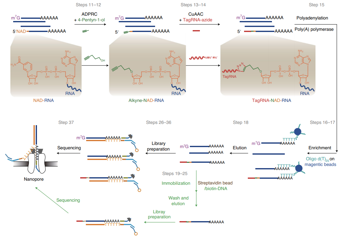 第四,NAD tagSeq可以揭示NAD-RNA的整體序列。ONT測(cè)序技術(shù)允許將RNA分子從3’端到5’端測(cè)序。因此,可以揭示RNA分子的序列。它允許分析cap如何通過轉(zhuǎn)錄后修飾(如選擇性剪接或5’非翻譯區(qū))調(diào)節(jié)RNA功能。