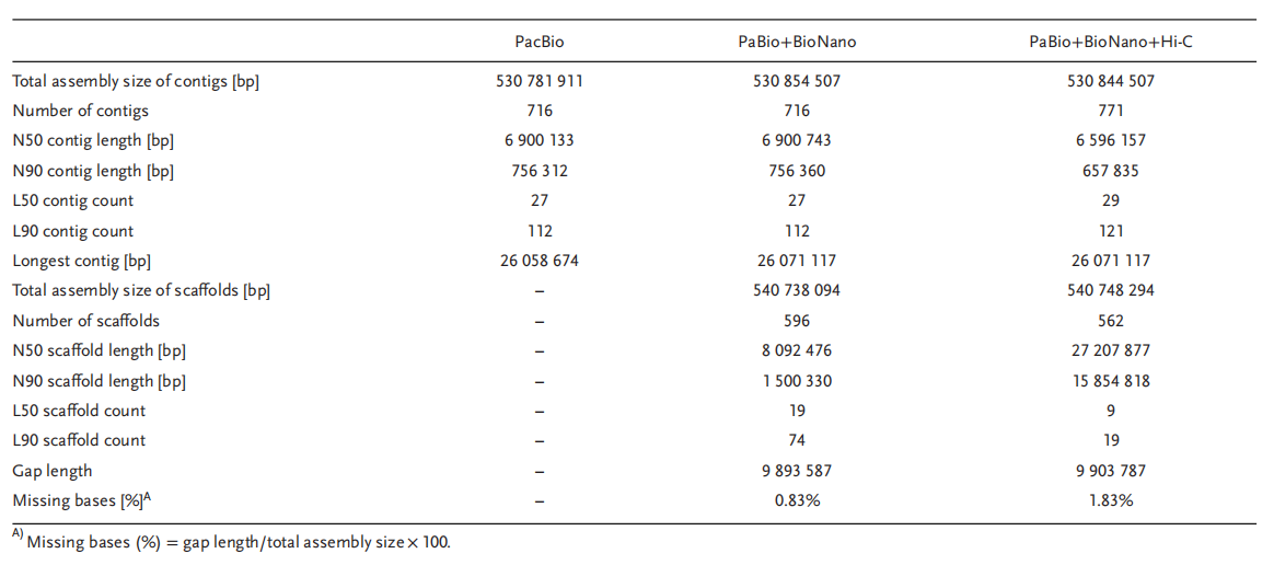 - 材料:C.×hytivus自交第14代(S14);測(cè)序:~69X PacBio+~104X Hi-C+Bionano;轉(zhuǎn)錄組輔助基因預(yù)測(cè):Illumina RNA-Seq 及 PacBio Iso-Seq