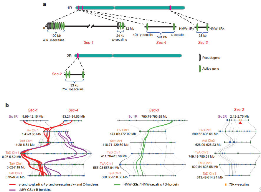 與小麥和大麥相似,黑麥在胚乳組織中積累了豐富的儲存蛋白SSPs。作者利用威寧基因組組裝技術(shù)對黑麥SSP基因座進行了分析。