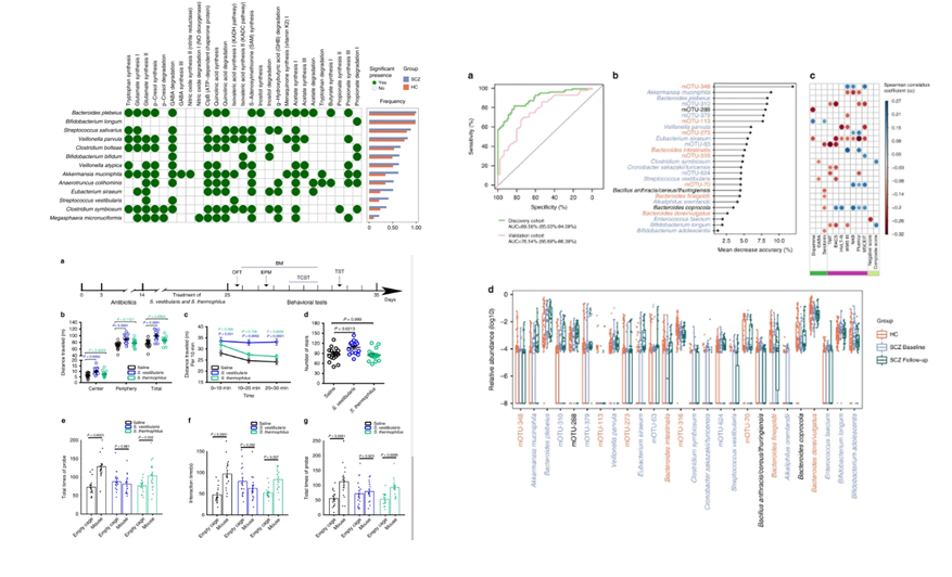 本文中研究者分析了90名無藥物治療精神分裂癥患者和81名健康對照者的糞便微生物組,確定了一種能夠區(qū)分患者和對照者的微生物物種分類器。研究者發(fā)現(xiàn)與精神分裂癥相關(guān)的功能性潛能包括短鏈脂肪酸合成、色氨酸代謝以及神經(jīng)遞質(zhì)的合成/降解等方面的差異。Streptococcus vestibularis(精神分裂癥中比較富集的細(xì)菌)的移植會引起小鼠的社交行為缺陷,并改變小鼠外周組織中神經(jīng)遞質(zhì)的水平。本文為隊(duì)列研究和動(dòng)物模型的進(jìn)一步研究提供了新的線索。