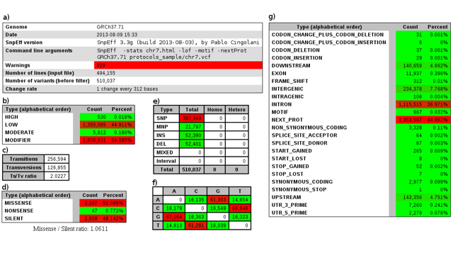 SnpEff 軟件通過基因組結(jié)構(gòu)注釋數(shù)據(jù)(GTF/GFF文件),對VCF文件中的SNP/InDel信息進(jìn)行注釋,即主要解釋了SNP/InDel是否能夠?qū)幋a蛋白基因造成影響。SnpEff自帶大量已經(jīng)發(fā)表的基因組的信息,可以快速利用已發(fā)表的基因組信息進(jìn)行SNP/InDel位點的注釋分析。對于未收錄的基因組,SnpEff也提供了標(biāo)準(zhǔn)流程來構(gòu)建對應(yīng)的分析數(shù)據(jù)庫。