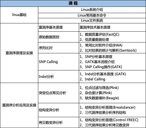 應(yīng)各位老師需求,百邁客特開辦重測序生信課程,面向全體科研工作者,系統(tǒng)學(xué)習(xí)全基因組重測序中常規(guī)分析內(nèi)容。課程設(shè)計覆蓋數(shù)據(jù)質(zhì)控、序列比對、SNP Calling、SNP 注釋、結(jié)構(gòu)變異等重測序常見分析內(nèi)容。