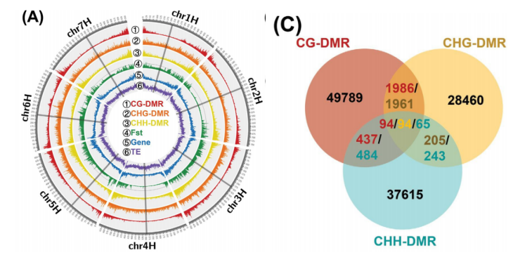 土壤是植物的活基質(zhì),為植物的生長(zhǎng)發(fā)育、水、 礦物元素和微生物群提供了必要的物理支持,土壤的物理、化學(xué)和生物特性對(duì)植物的生長(zhǎng)發(fā)育有很大的影響。因此,通過(guò)開(kāi)發(fā)適合各種類型土壤的更好的作物品種,可以實(shí)現(xiàn)土壤資源的可持續(xù)和有效的利用。大麥一直是一種重要的糧食 作物,現(xiàn)在也被用作飲料和飼料的原料生產(chǎn)產(chǎn)品。在大麥馴化過(guò)程中,特別是在現(xiàn)代育種和集中化栽培后,栽培大麥的遺傳多樣性顯著降低,成為大麥育種提高生物非生物壓力耐受性和改良的瓶頸,野生大麥已適應(yīng)各種土壤 類型、有效性、水分、溫度和海拔高度不同的環(huán)境,成為改良栽培大麥的理想遺傳資源。已有研究已發(fā)現(xiàn)了多個(gè)物種(包括病毒、細(xì)菌、真菌、植物和動(dòng)物)對(duì)微生態(tài)環(huán)境的適應(yīng)性及產(chǎn)生的遺傳變異。當(dāng)植物暴露于環(huán)境脅迫下時(shí),DNA甲基化對(duì)轉(zhuǎn)錄組的強(qiáng)調(diào)控已被廣泛報(bào)道。植物對(duì)環(huán)境脅迫的反應(yīng)是一個(gè)復(fù)雜的過(guò)程,需要在多組學(xué)水平上進(jìn)行協(xié)調(diào),目前基因組測(cè)序、甲基化組測(cè)序、轉(zhuǎn)錄組,蛋白質(zhì)組學(xué),和代謝組在這方面都有了成熟的應(yīng)用。水稻、蘋果等物種的非生物脅迫研究表明植物中DNA的甲基化和TE的動(dòng)員可以影響適應(yīng)性應(yīng)激反應(yīng)和基因組的穩(wěn)定性,因此,破譯小麥等野生品系的DNA甲基組與轉(zhuǎn)錄組和代謝組的相互作用,將有利于耐非生物和生物脅迫新品種的選擇和育種。