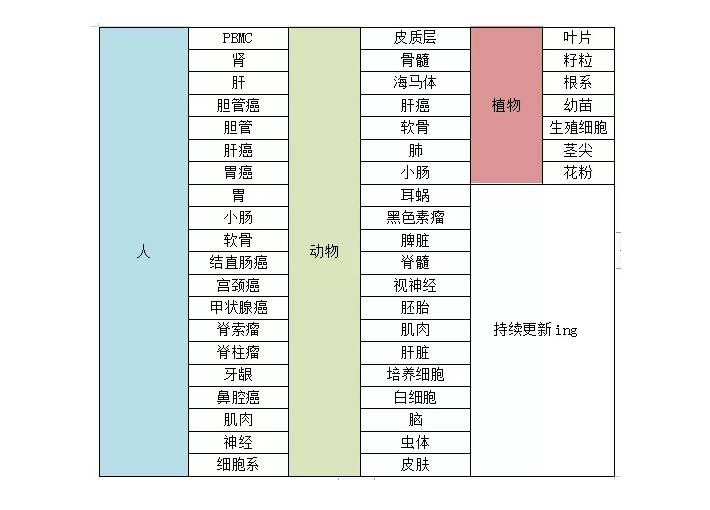 百邁客開展的單細(xì)胞測(cè)序項(xiàng)目中,人和鼠項(xiàng)目開展得較早,畜牧類、水產(chǎn)類、植物也積累了很豐富的經(jīng)驗(yàn),組織類型有分選的PBMC,易解離的肝、肺、胚胎,難解離的腸、耳蝸、皮膚、胃,植物的花粉、葉片、莖尖、根尖、籽粒等。