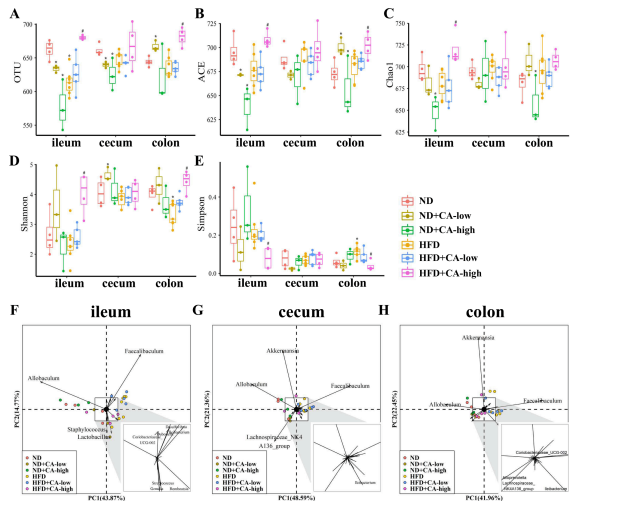 5.補(bǔ)充CA可減少高脂飼料喂養(yǎng)小鼠的腸道菌群失調(diào)
