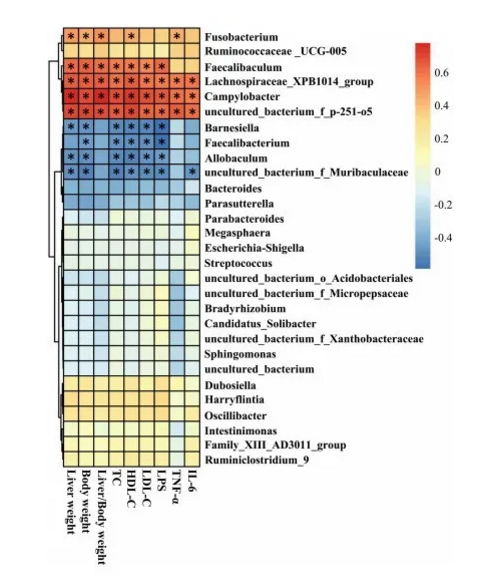 6.腸道菌群與NAFLD相關(guān)參數(shù)的相關(guān)性