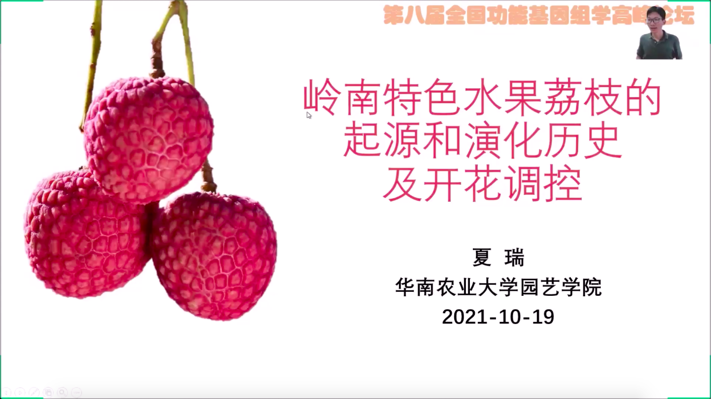 華南農(nóng)業(yè)大學(xué)夏瑞教授對(duì)嶺南特色水果荔枝的起源、演化歷史及開花調(diào)控進(jìn)行了闡述,展示了無患子科荔枝“妃子笑”單倍型基因組的構(gòu)建與荔枝的演化分析,并介紹了72份荔枝種質(zhì)資源的重測序研究,表明栽培荔枝可能起源于兩條獨(dú)立的馴化事件;另外,還闡述了荔枝開花相關(guān)基因的研究,表示這些關(guān)于荔枝基因組和馴化歷史的結(jié)果必將加速荔枝及其它相關(guān)無患子科植物的基礎(chǔ)研究和遺傳改良。