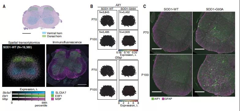 肌萎縮性側(cè)索硬化癥(ALS)是一種進(jìn)行性神經(jīng)退行性疾病,由運動神經(jīng)元變性導(dǎo)致骨骼肌失去神經(jīng)支配而引起的,其癥狀先在單肢的遠(yuǎn)端肌肉中表現(xiàn),然后逐漸擴散到全身,最終導(dǎo)致全身癱瘓。前期研究證明運動神經(jīng)元和膠質(zhì)細(xì)胞之間的信號傳遞障礙是該疾病的一個關(guān)鍵因素,但是在完整的脊髓組織中驅(qū)動這些過程的分子事件的時空順序仍然不清楚。