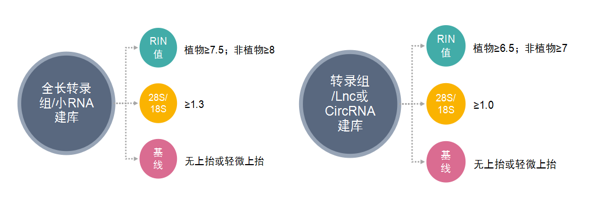 提取完RNA后,都要進行一系列的質量驗證,質量合格的RNA,才能用于后續(xù)的建庫、測序、熒光定量等實驗。一般需要對RNA的濃度、純度、完整性進行檢測,具體檢測方法&標準如下: