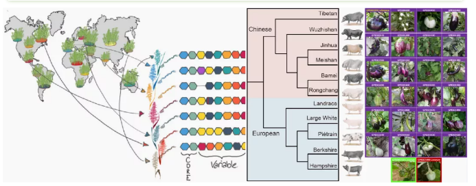 因此對(duì)于一個(gè)物種來說,如果只使用單一的參考基因組進(jìn)行遺傳馴化變異的研究,可能會(huì)丟失掉大量有意義的基因信息。為了解決這些問題并充分理解關(guān)鍵物種中重要性狀形成機(jī)理,為育種奠定重要的研究基礎(chǔ),動(dòng)植物泛基因組研究應(yīng)運(yùn)而生。
