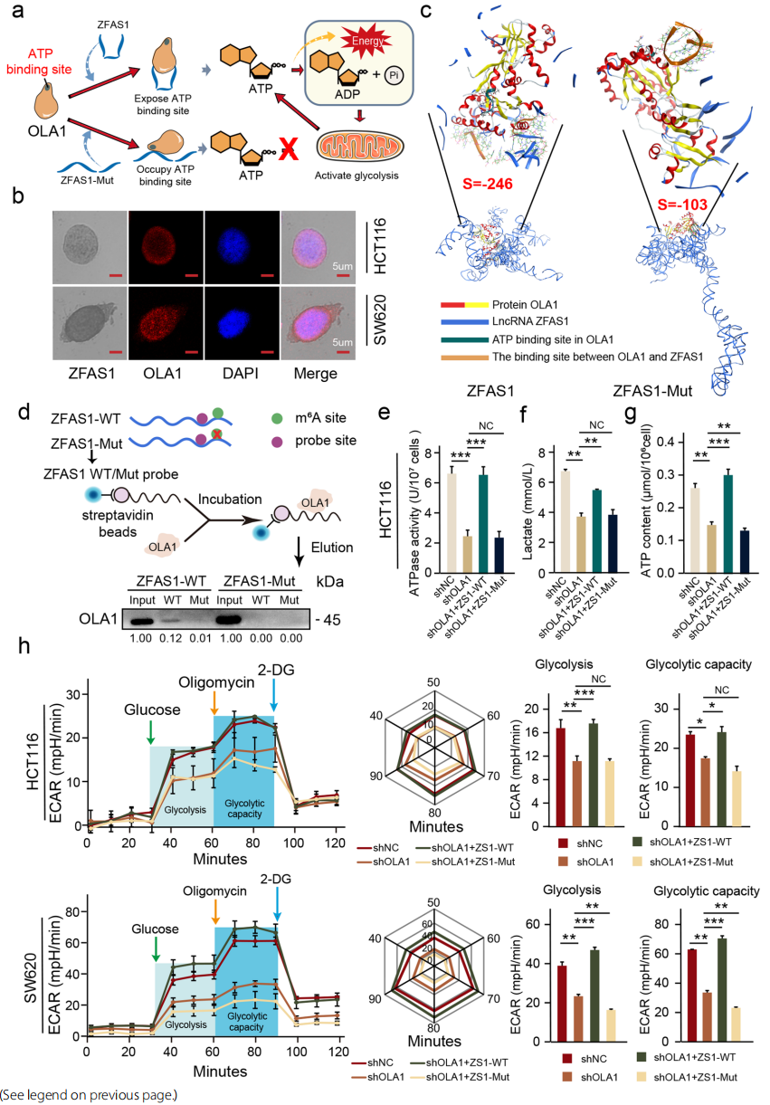 5、ZFAS1通過(guò)與OLA1的OBG型功能域結(jié)合增強(qiáng)OLA1的活性并激活糖酵解代謝
