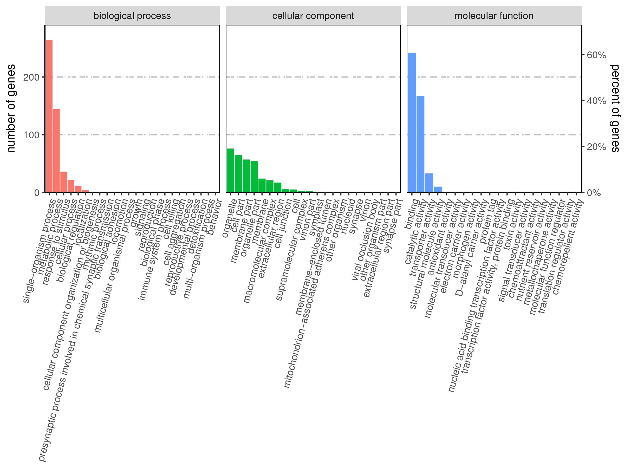 對(duì)于每個(gè)差異分組的4種(同上)變化趨勢(shì)中的基因和蛋白分別進(jìn)行GO功能顯著性富集分析,作GO富集氣泡圖。通過(guò)GO富集分析可以得到與關(guān)聯(lián)到的蛋白質(zhì)背景相比,差異蛋白質(zhì)中顯著富集的GO功能條目,從而得出差異蛋白質(zhì)與哪些生物學(xué)功能顯著相關(guān),確定差異蛋白行使的主要生物學(xué)功能。