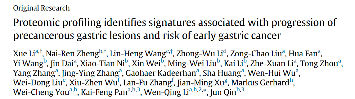 Li X, Zheng NR, Wang LH, et al. Proteomic profiling identifies signatures associated with progression of precancerous gastric lesions and risk of early gastric cancer. EBioMedicine. 2021;74:103714. doi:10.1016/j.ebiom.2021.103714